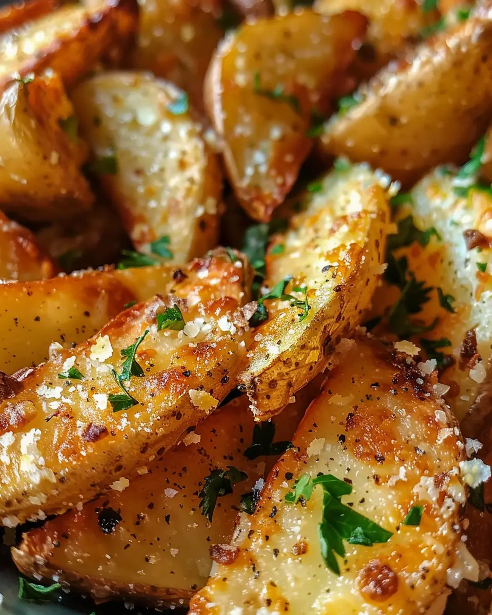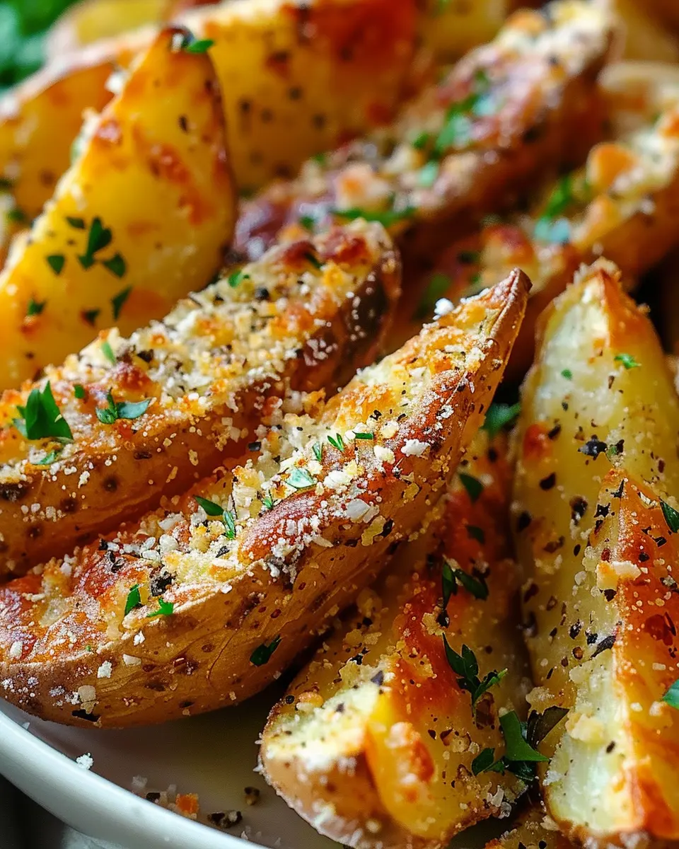 Enjoy these delicious Baked Garlic Parmesan Potato Wedges, a savory snack that combines the flavors of garlic and parmesan for a perfect side dish or comfort food.