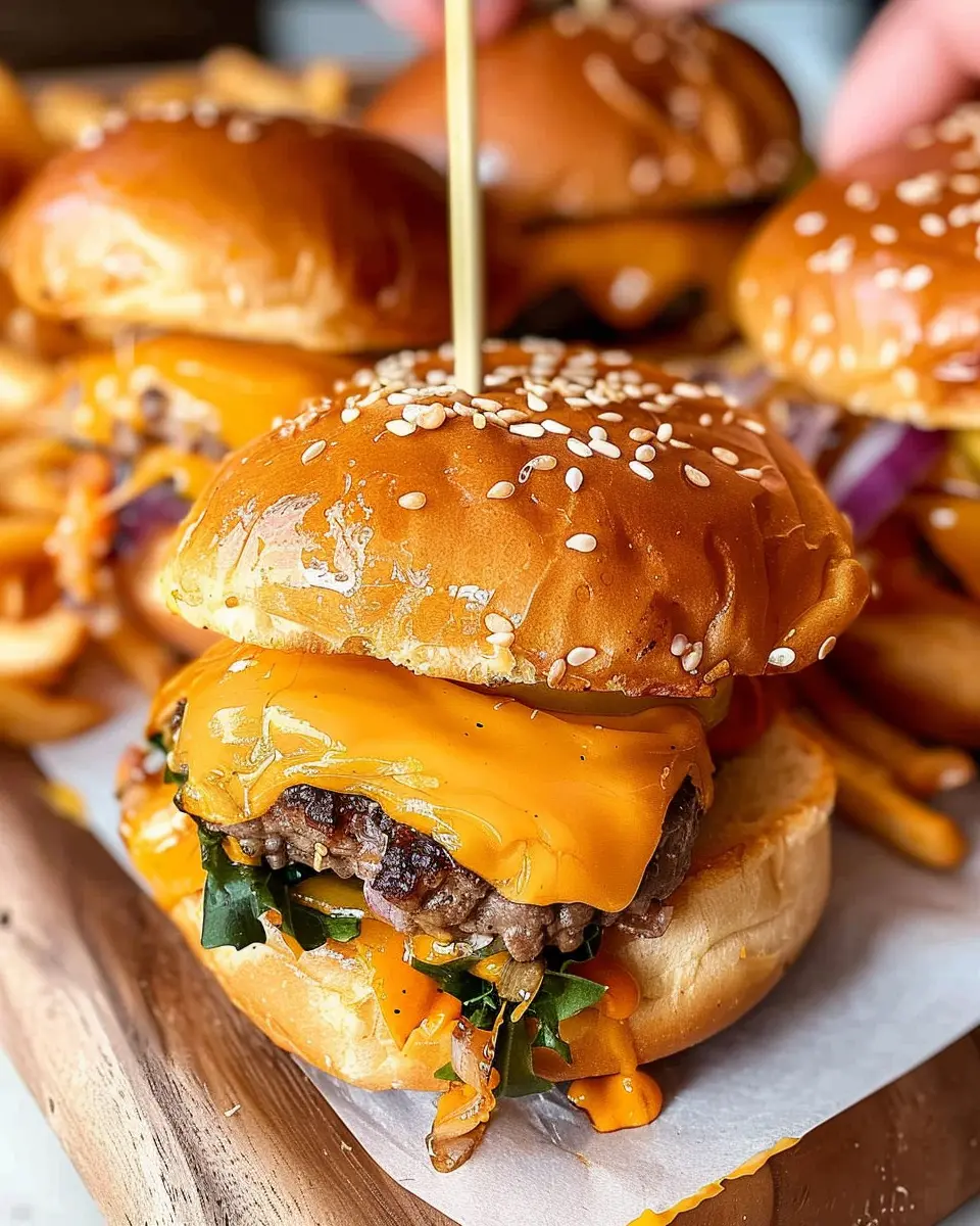 These Cheeseburger Sliders are the perfect blend of juicy turkey and crispy bacon, making them a delightful treat for everyone at your gathering!