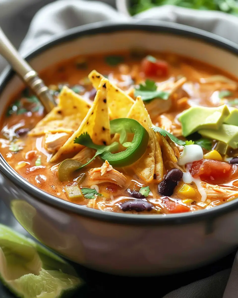 Finally, it’s time for the best part—serving your soup! Ladle the warm mixture into bowls and top each serving with crispy tortilla strips, avocado, and a sprinkle of cilantro. A squeeze of fresh lime juice adds a delightful zing, bringing everything together in perfect harmony.
