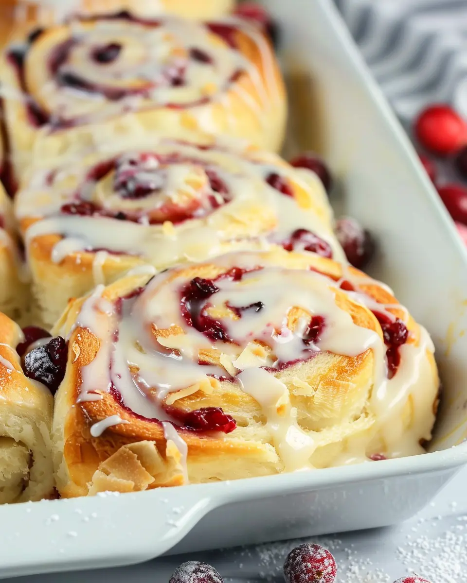 Indulge in the delightful flavors of cranberry and orange with these sweet rolls, perfect for cozy mornings.