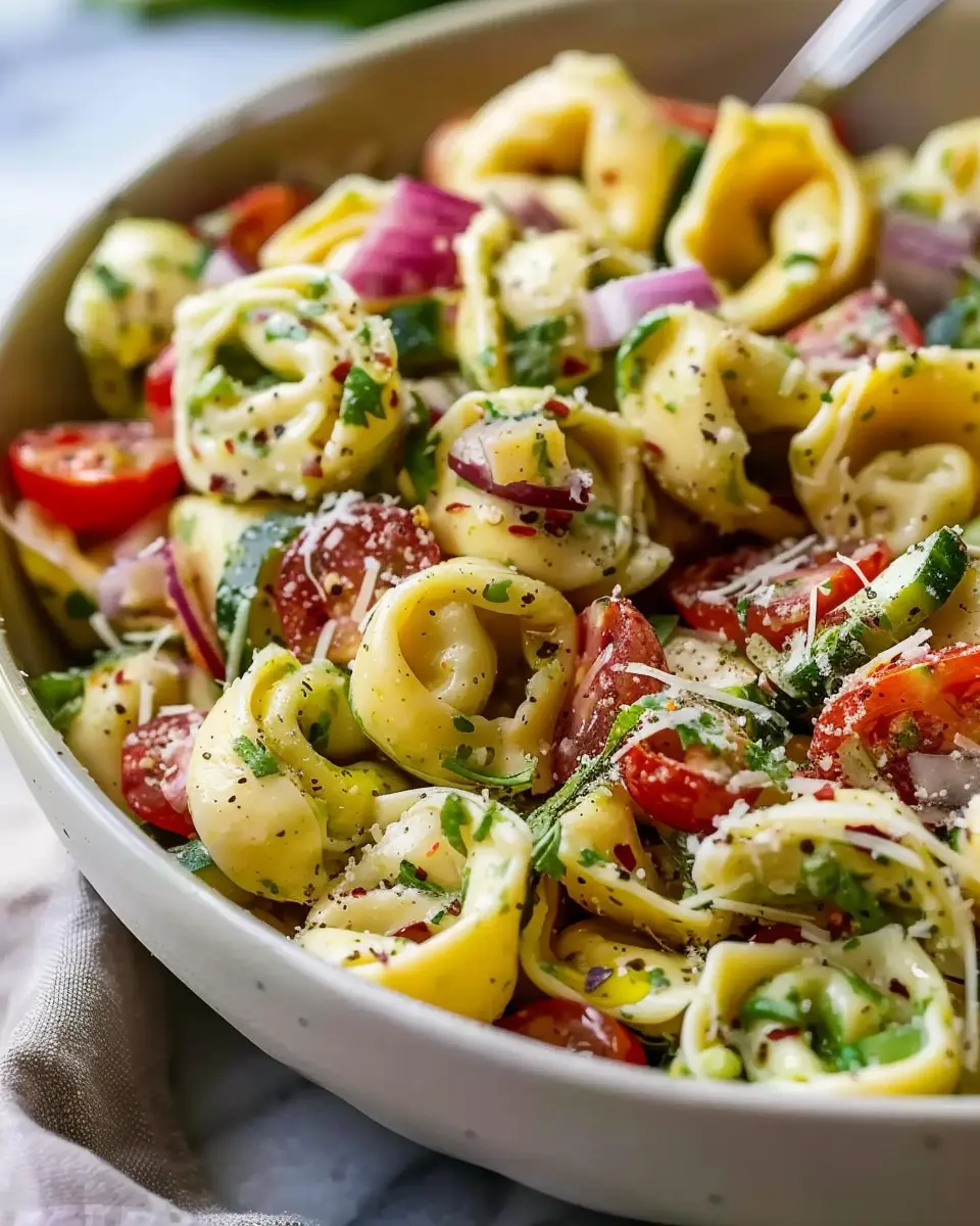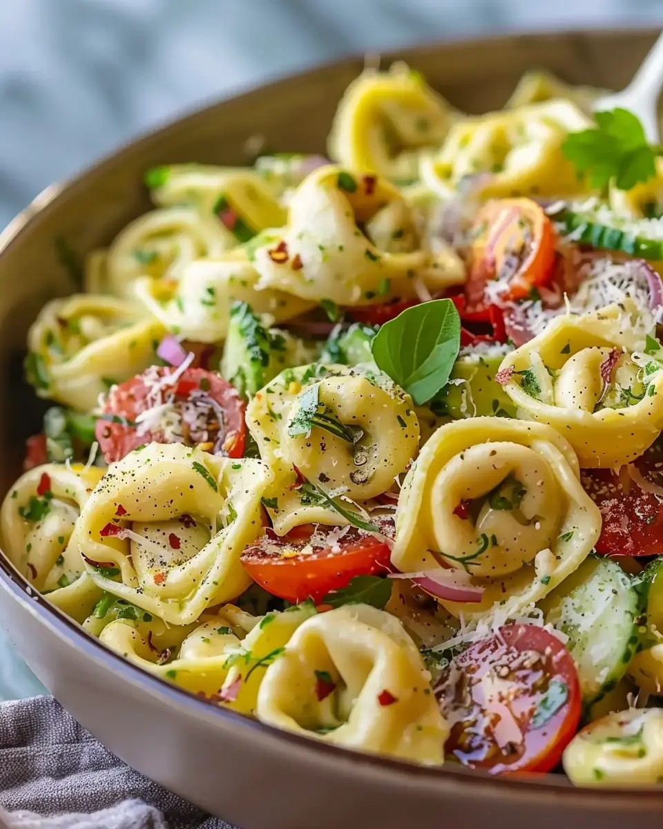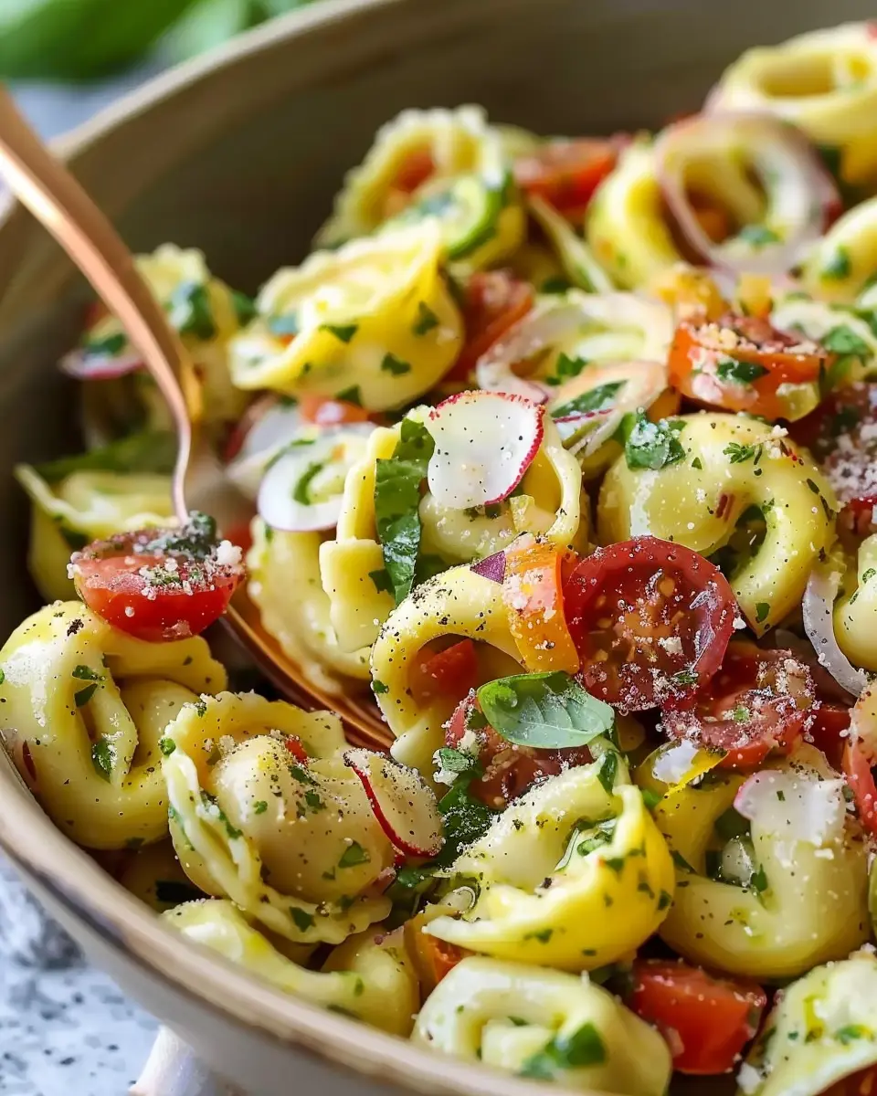 A refreshing and tasty salad that combines tortellini with vibrant vegetables.