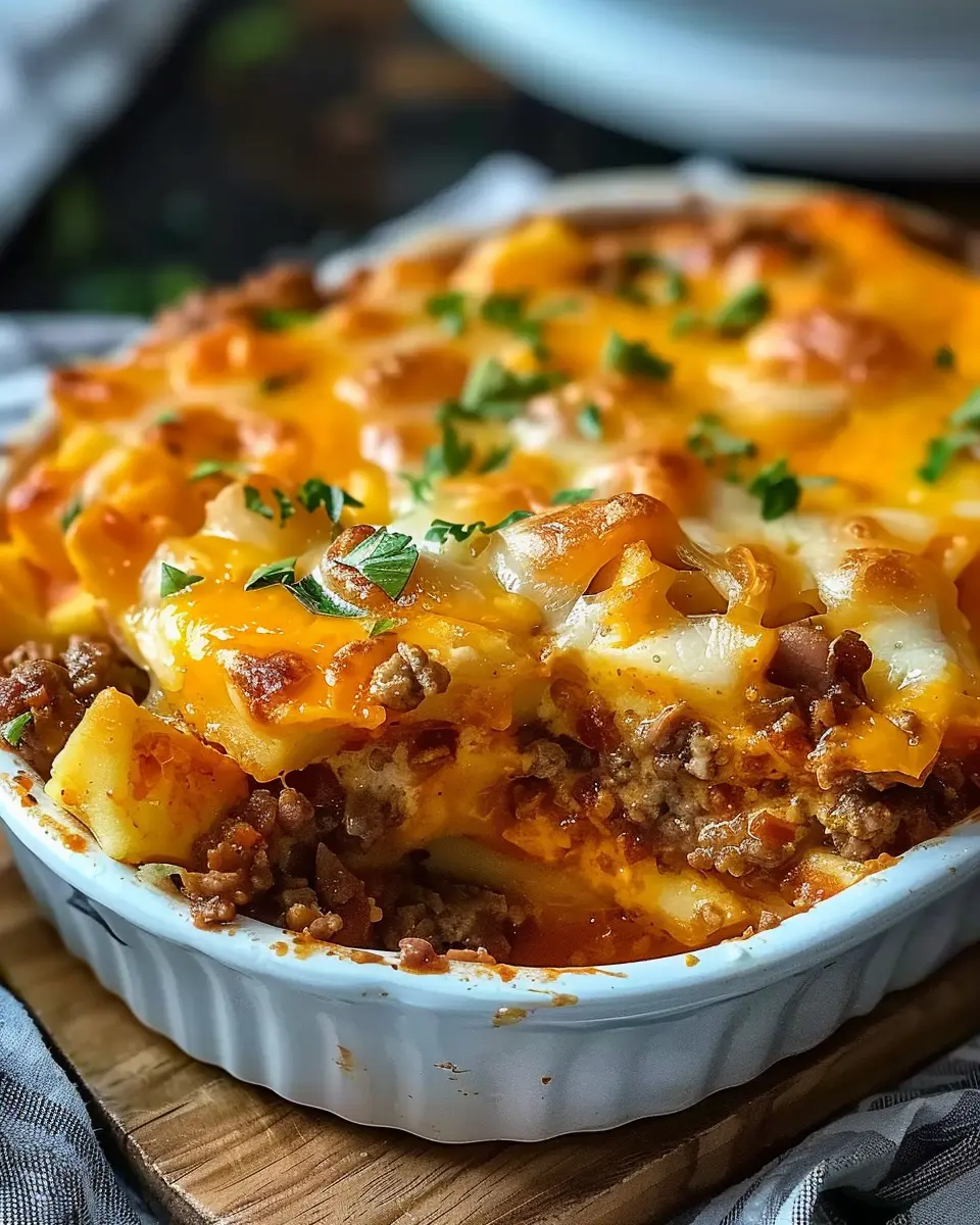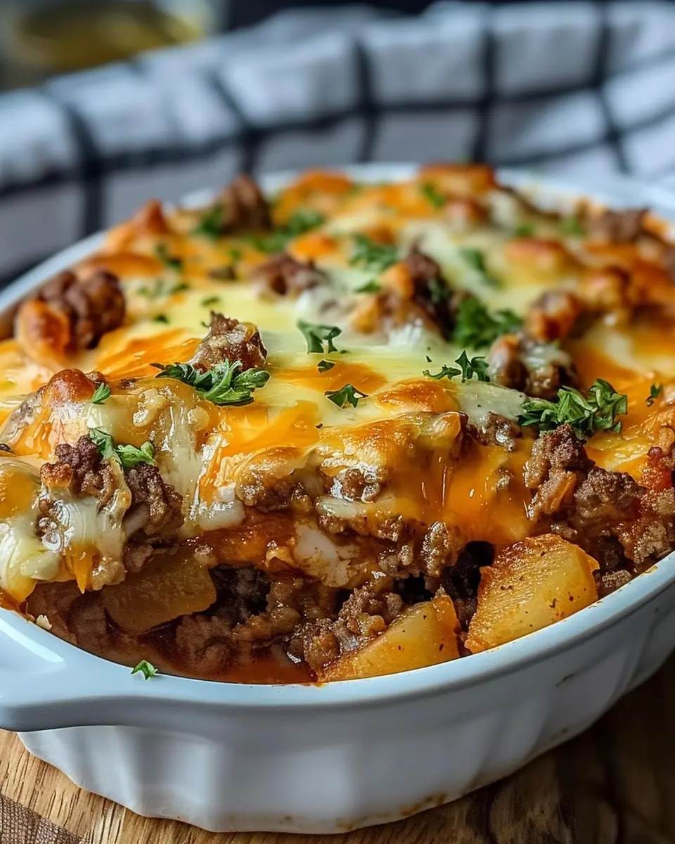 Hobo Casserole is a delicious and easy ground beef recipe that combines the flavors of hearty beef and crispy turkey bacon.