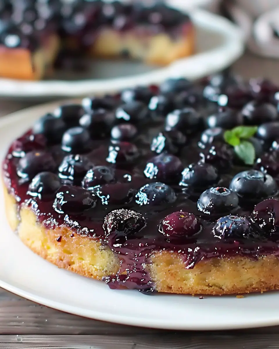 3. Carefully invert the cake onto a serving plate, allowing those gorgeous blueberries to shine on top.