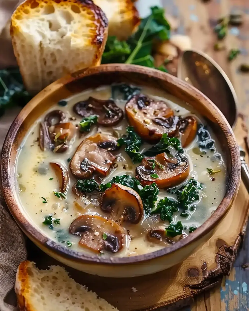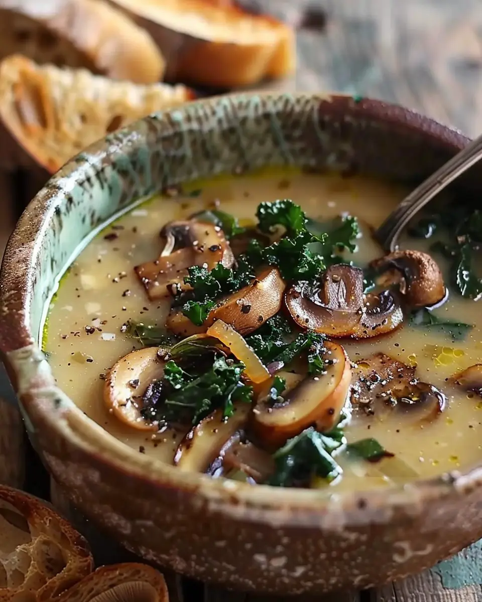 Wild Mushroom Soup: Indulgent Caramelized Onion and Kale Delight